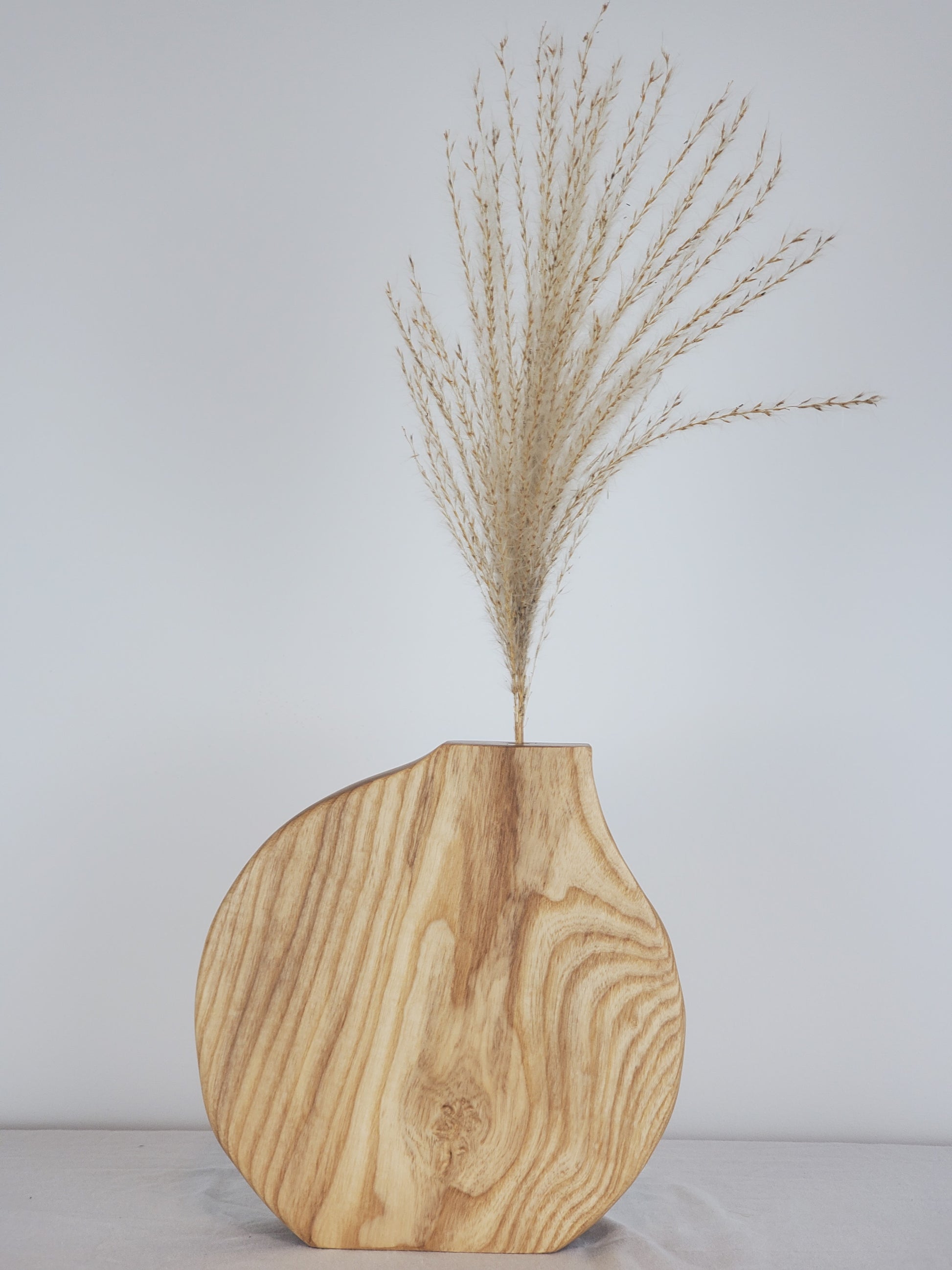 Celebrating the raw beauty of ash wood, where simplicity says it all. Let this Bud Vase 002: Pure Ash stand alone on a shelf - no stems needed to make a quiet statement. Or make it your new go-to accent piece: a one of a kind ash wood bud vase that brings nature's quiet beauty indoors. Shaped with a smooth contour that feels as good as it looks, this bud vase shows off the rich flowing grain of ash wood. Pop in some dried or faux stems, grasses or delicate branches. Change them up whenever the season shifts. It's a subtle, natural way to refresh your space.